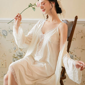 2 Piece/set Women Nightdress Set Lace Gowns & Robes Sets Vintage Elegant Nightgowns Bathrobes Sexy Sleepwear Cotton Homewear