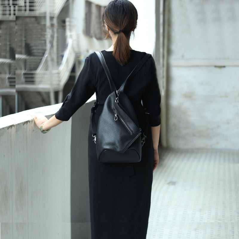 Anti-theft Genuine Leather Small Backpack Women Retro Classic School Bags For Girl Multifunction Shoulder Crossbody Chest Bag