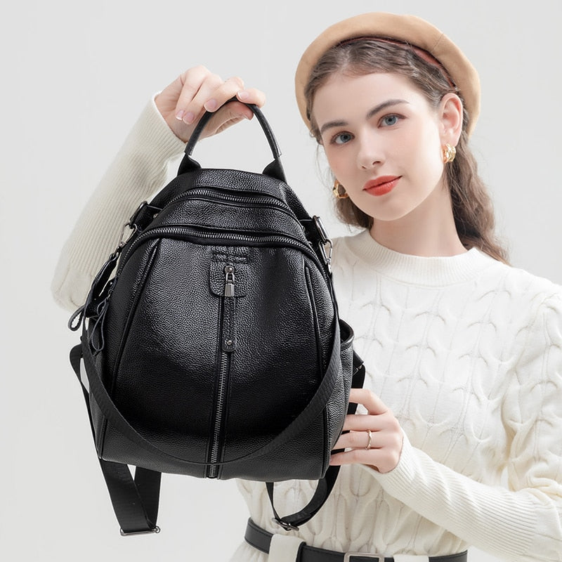 Black Backpack for Women Genuine Leather Cowhide Bagback Girl Commuter Bags Small Cute Travel Bag 2023 New Fashion Design Luxury