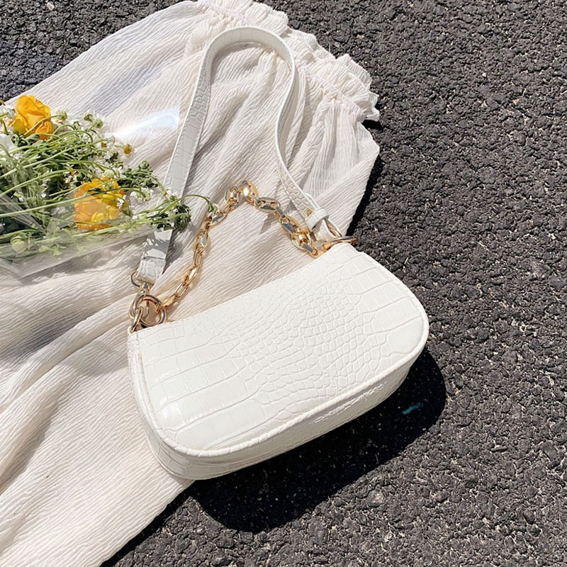 Fashion Crocodile Pattern Baguette bags MINI PU Leather Shoulder Bags For Women Chain Designer Luxury Handbag Female Travel tote