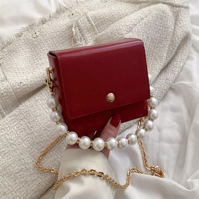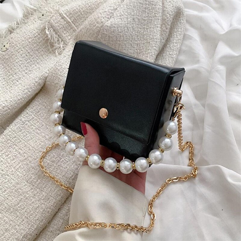 Messenger Bag Womens Bags PU Leather Handbags Chain Shoulder Crossbody Bag Pearl Handle Portable women handbag
