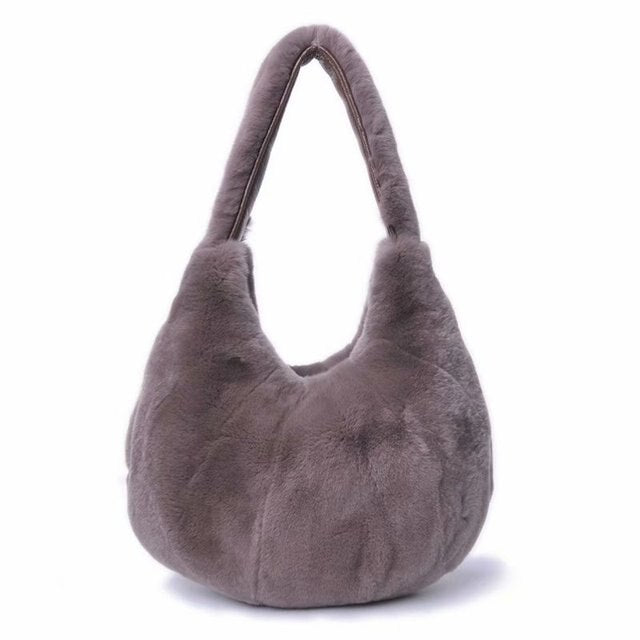 New Arrivals Women's Real Rex Rabbit Fur Handbags Fashion Fur Shoulder Bags Large Capacity Totes S7985