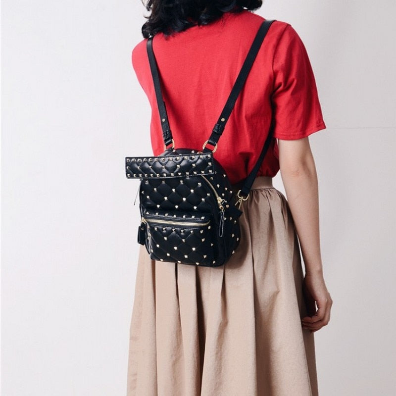 Real Sheepskin Leather Backpack Style Fashion Rivet School Bag Luxury Party Designer Lady Shoulder Bag 2023 Travel Mini Bags