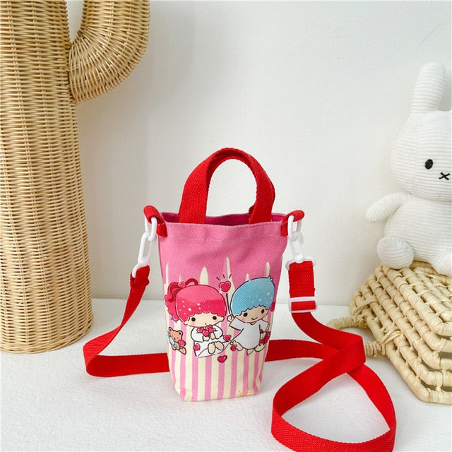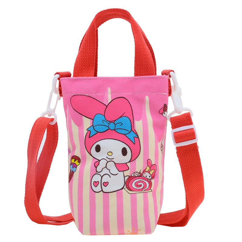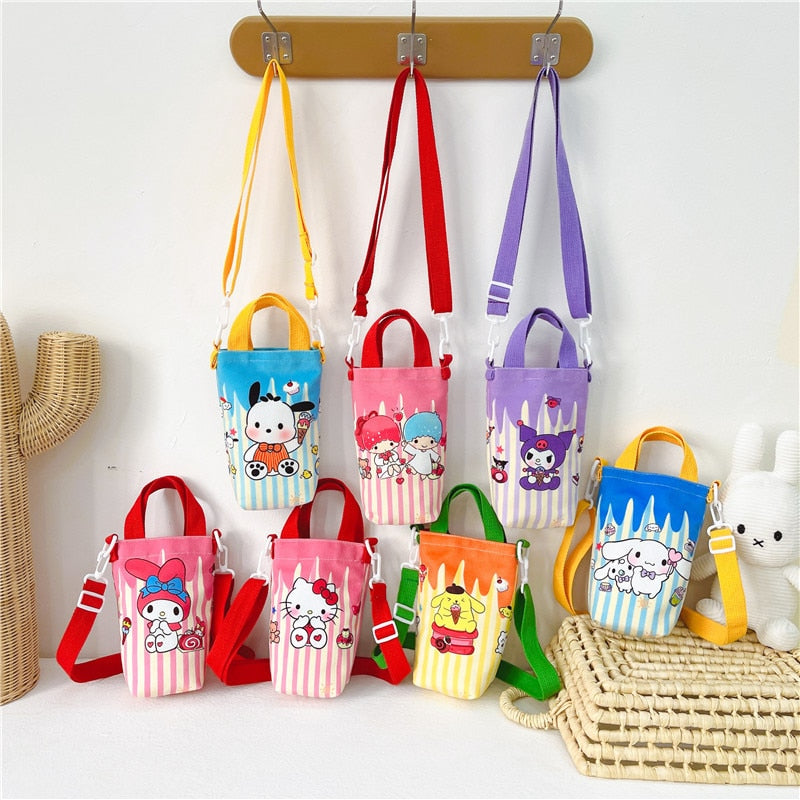 Sanrio Children Outdoor Water Cup Bag Cylindrical Shoulder Bags Hello Kitty Kulomi Melody Cartoon Printing Girls Messenger Bag