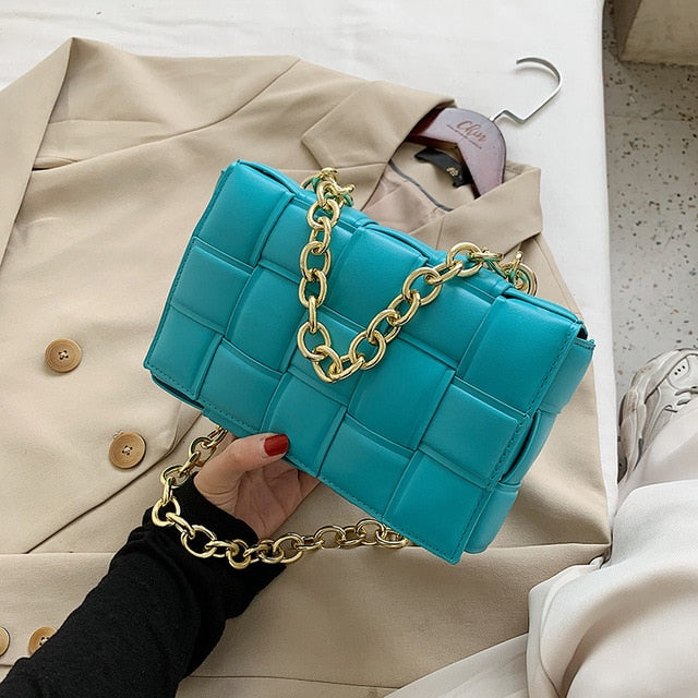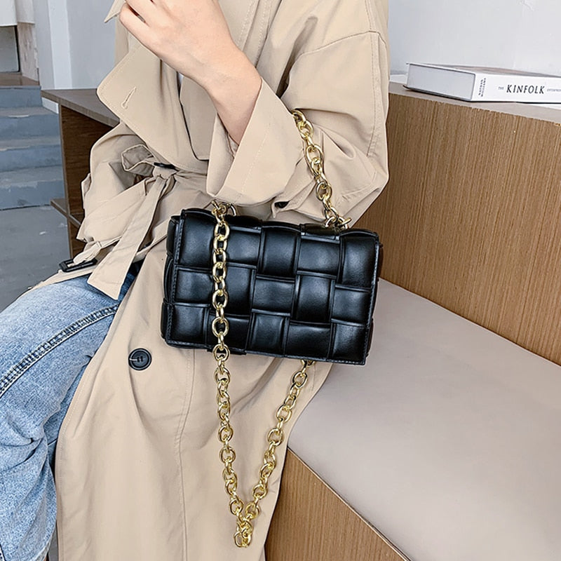 Weave Flap Bags for Women 2020 Trend Pu Leather Handbags Plaid Tote Bag with Chain Strap Shoulder Bag Samll Black Crossbody Bag