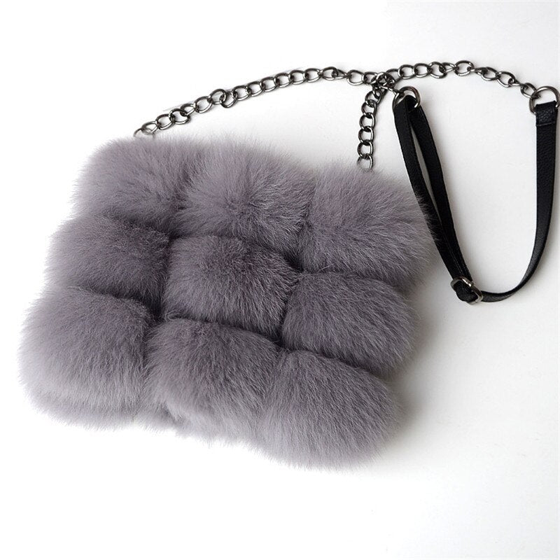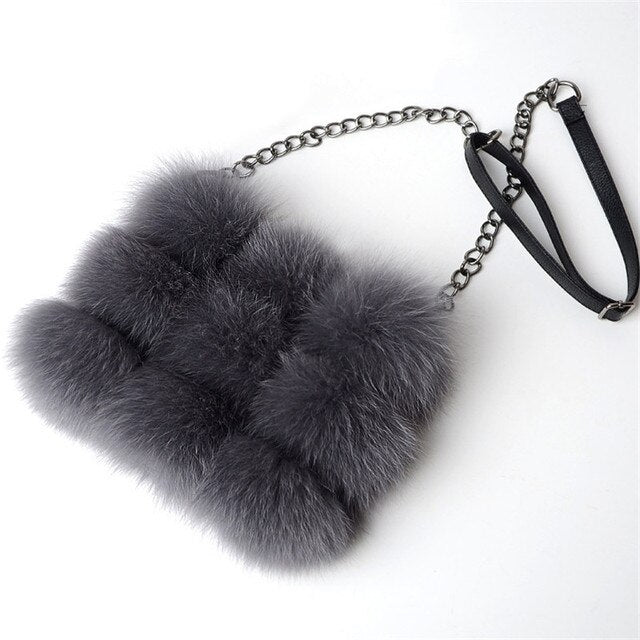 Winter Woman Bag Genuine Fox Fur Leather Handbags Women's Leather Shoulder Crossbody Bags High Quality Women Totes Messenger Bag