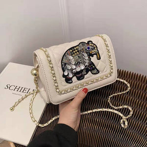 • High-end design handbags 2022 new elephant embroidery thread one-shoulder small square bag Western-style messenger handbags