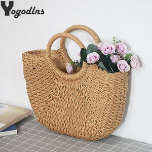 Summer Handmade Bags for Women Beach Weaving Ladies Straw Bag Wrapped Beach Bag Moon shaped Top Handle Handbags Totes