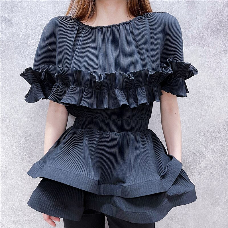 Elegant Women Ruffle Top Chiffon Shirt Blouses Tops Work Female 2020 Layer Casual Chic Loose Tops Office OL Blouses Black