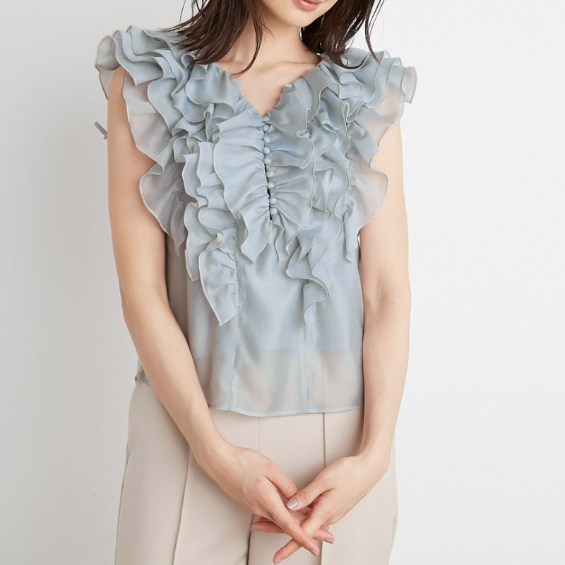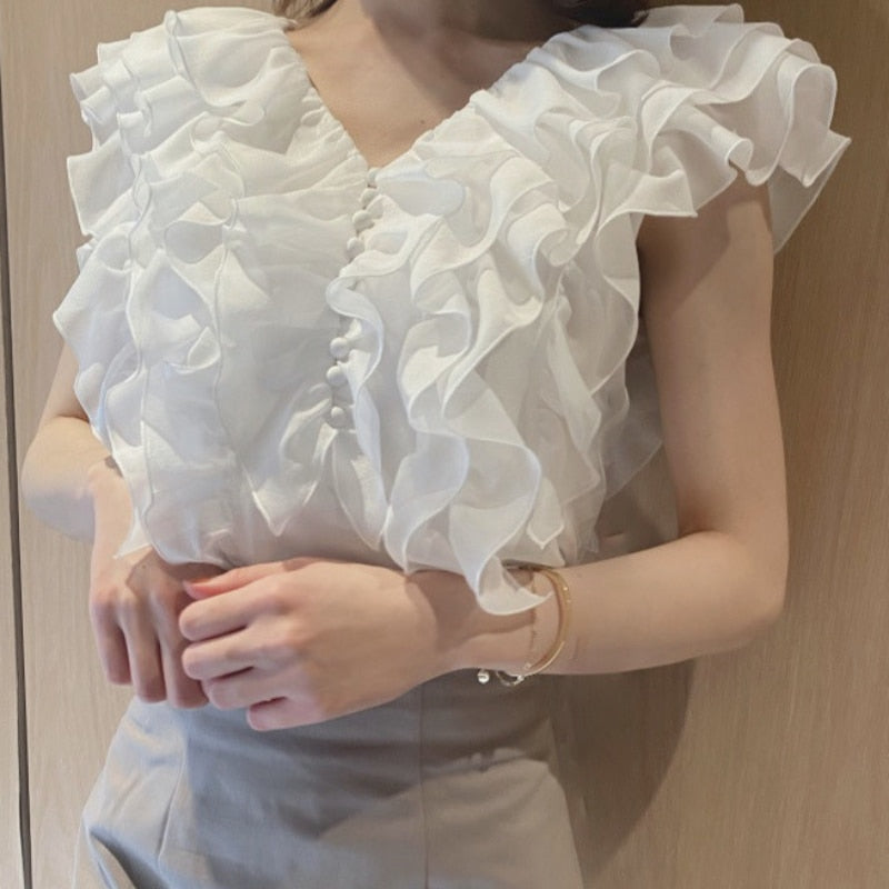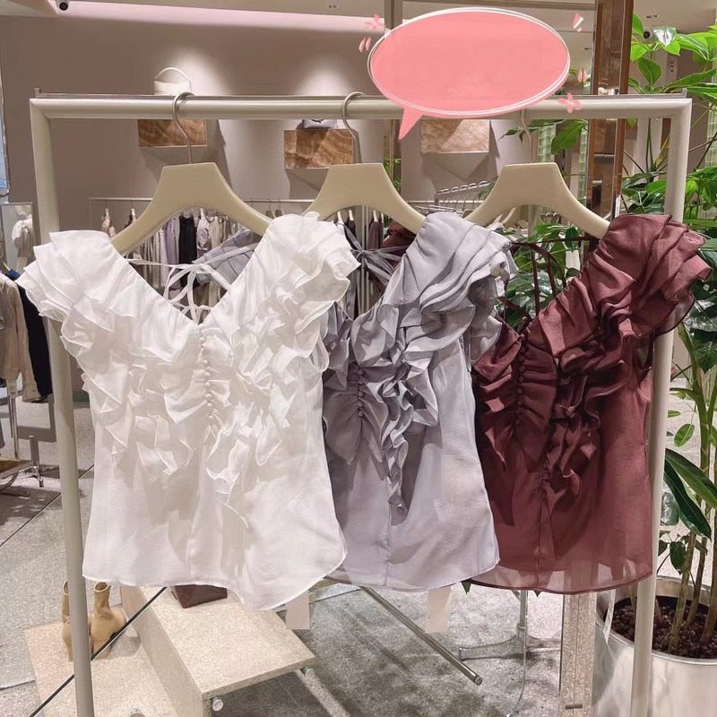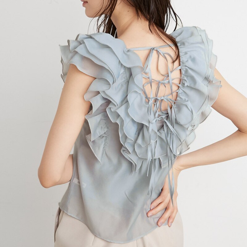 Japanese Sweet Ruffles Solid Chiffon Blouse Woman V-neck Backless Lace-up Woman Shirts 2021 Summer Chic Pullover Blusas Mujer