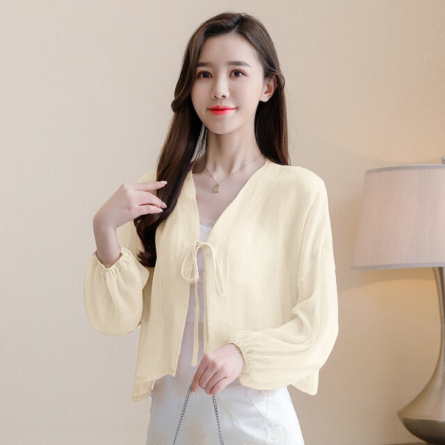 Little Shawl Short Sun Protection Cardigan Chiffon Blouse Women Spring and Autumn Thin All-Match Coat Fashion Woman Blouses 2021