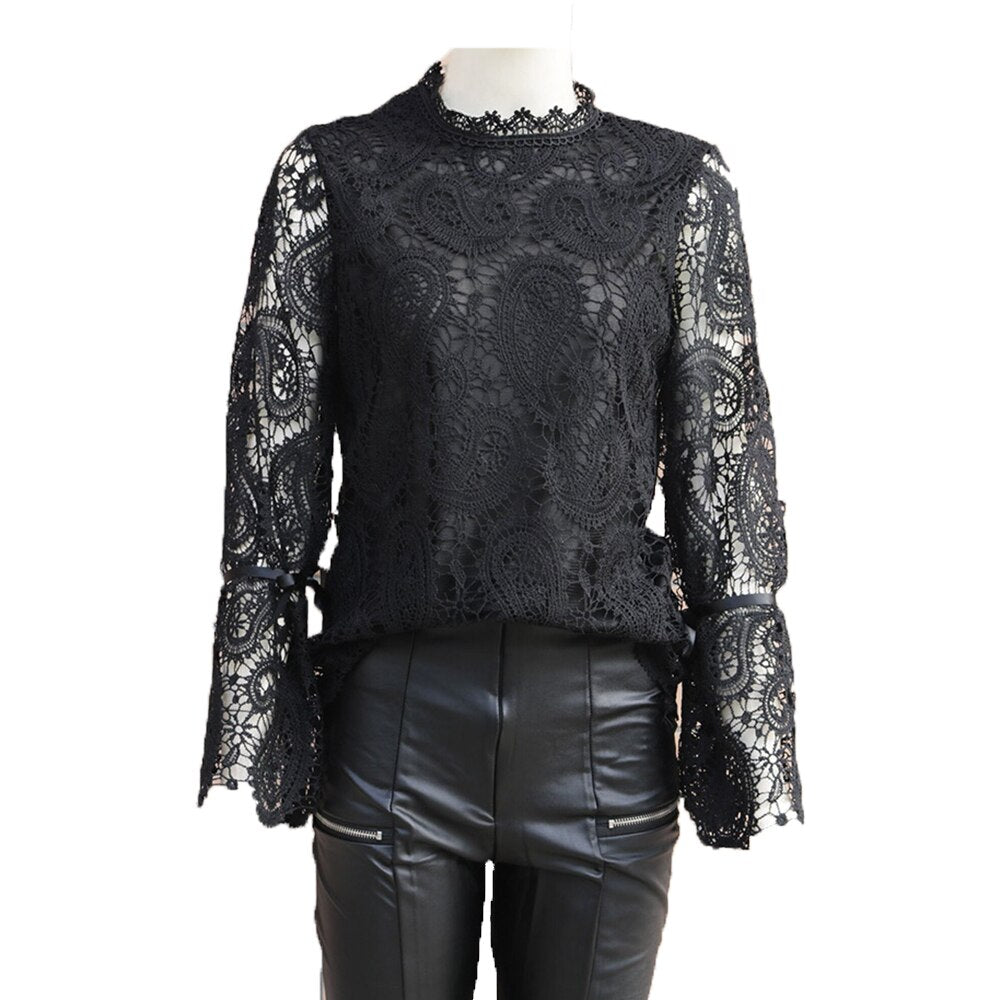 Sexy Lace Hollow Shirt Blouse Woman Spring Fall Fashion Long Sleeve O-neck Shirts Top Femme White Vintage Loose Women Clothing