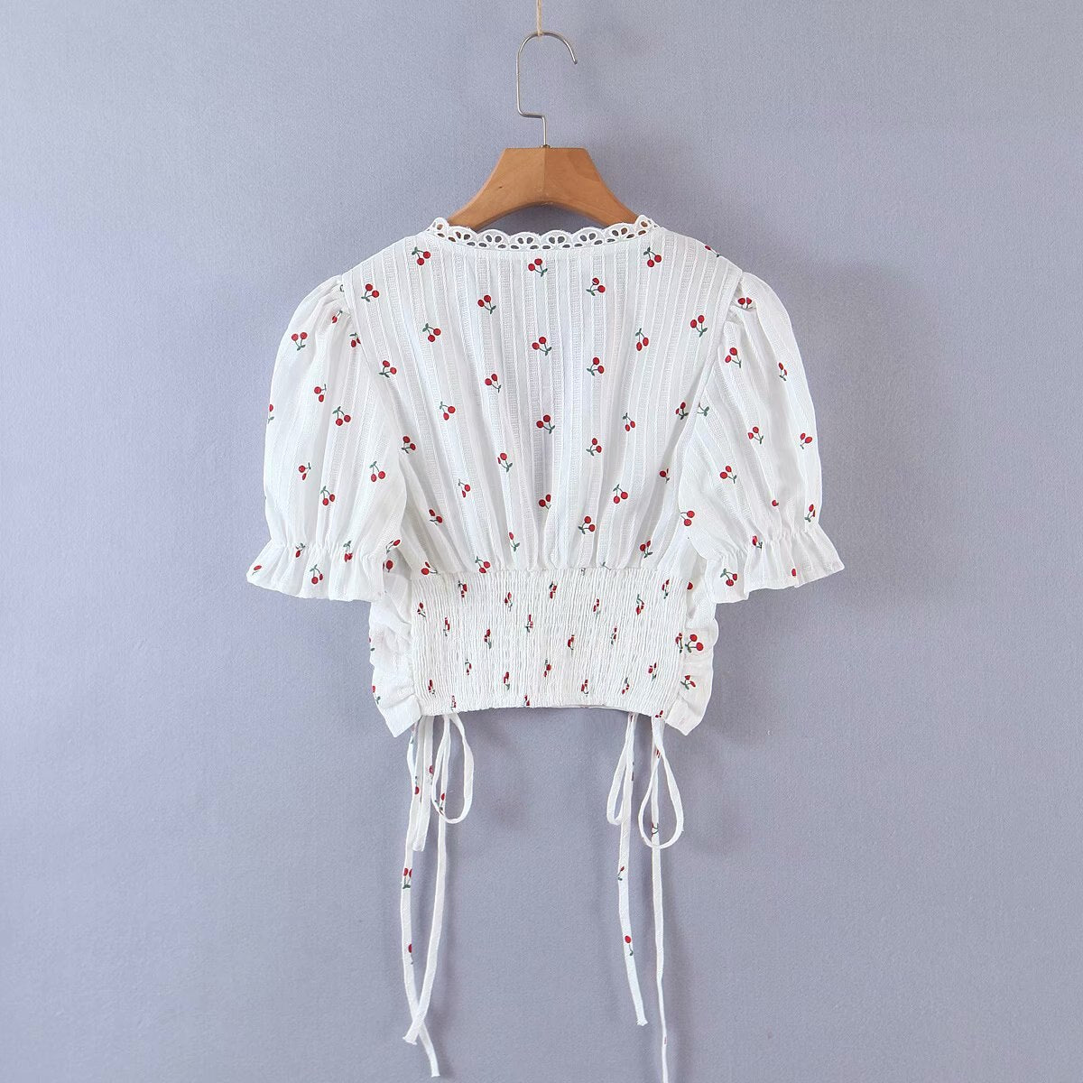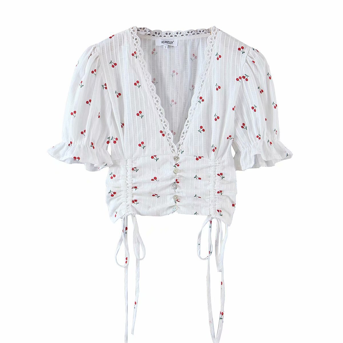 Summer button up shirts for women sexy lace blouse women casual short sleeve white top cute puff sleeve top cropped shirt v neck
