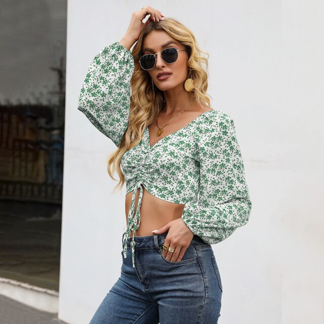 Summer New Elegant Off Shoulder Chiffon Shirts Women's Lantern Sleeve Blouse Female Summer Holiday Flroal Print Clothes 2022 New