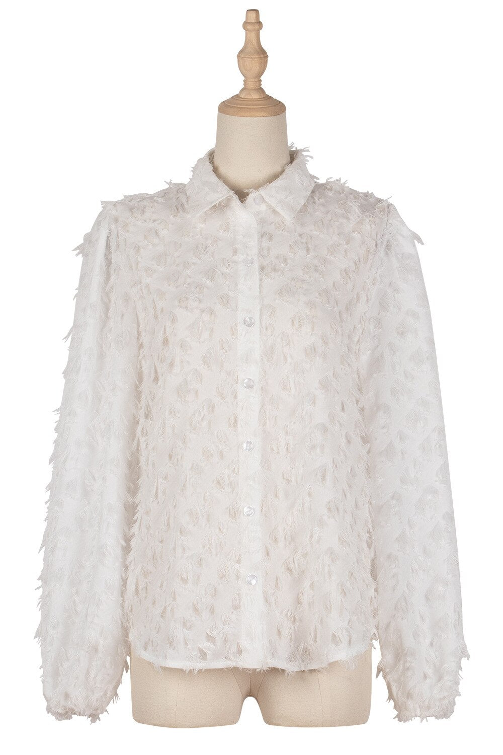 Women Turn-down Neck Top White Jacquard Fashion Shirt Female Long Sleeve Chic Shirt Sexy Polka Dot Solid Color Mesh Blouses