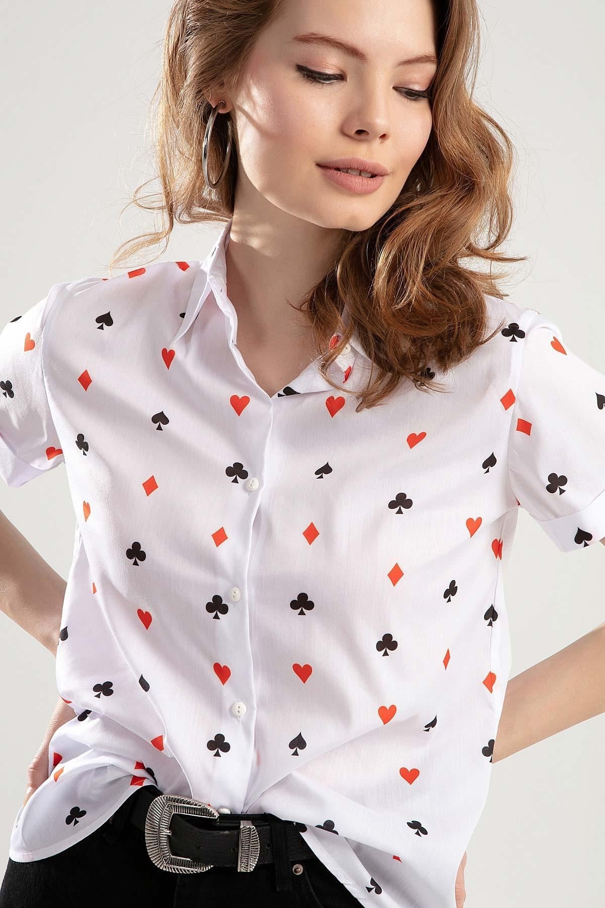 Women White Cards Printed Double Sleeve Shirt Shirts 2021 Fashion