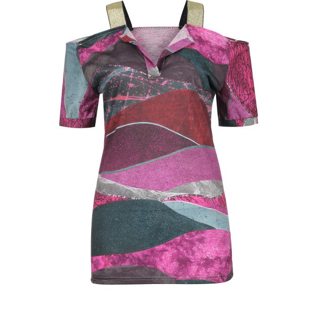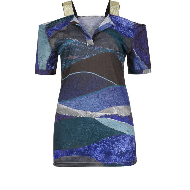 Women's Fashion Casual Print V-Neck Short Sleeve Sexy Off Shoulder Top