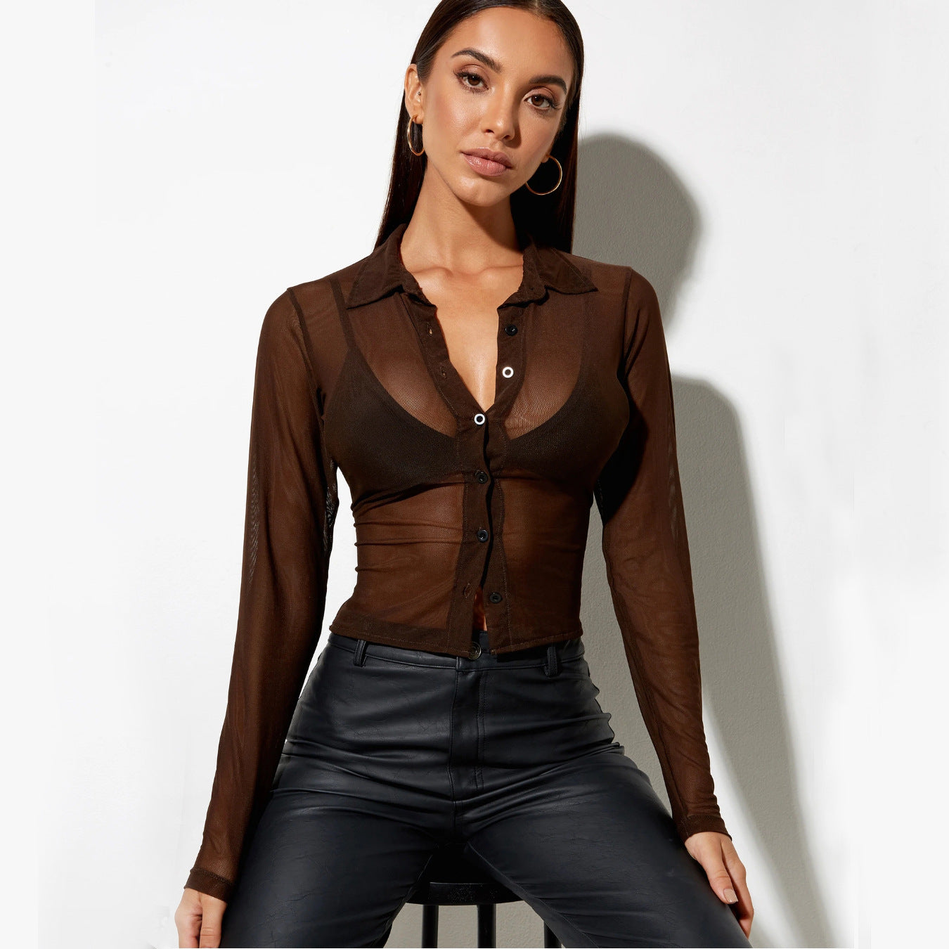 Y2K 2022 Spring Fall Fashion Net Yarn Square Neck Black Long Sleeves Women's Blouses Sexy Tank Cropped Casual Tops Shirts Tee