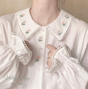 • Teen Girls Vintage Cotton Shirts for Women 2022 Embroidery Flower Tops Long Sleeve Single Breasted Sweet Fresh Shirts Spring