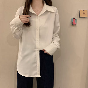 Women Chic Solid Shirt Office Ladies Casual Turn-down Collar Tops And Shirts Female Korean Long Sleeves Loose Blouses