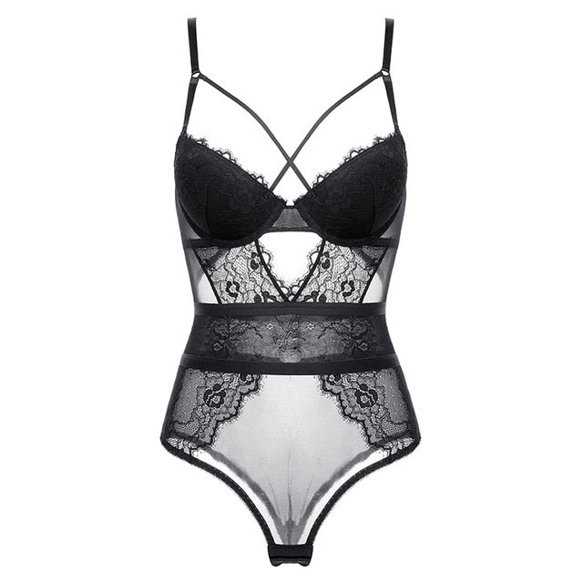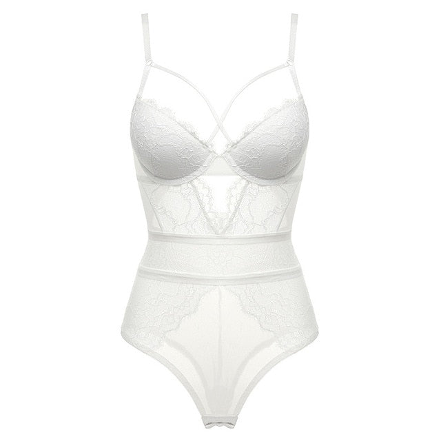 Sexy Bodysuit Women 2019 Hollow Out Lace Bodysuit Halter lace Jumpsuit Sleeveless Solid bralette bodysuits bandage Playsuit