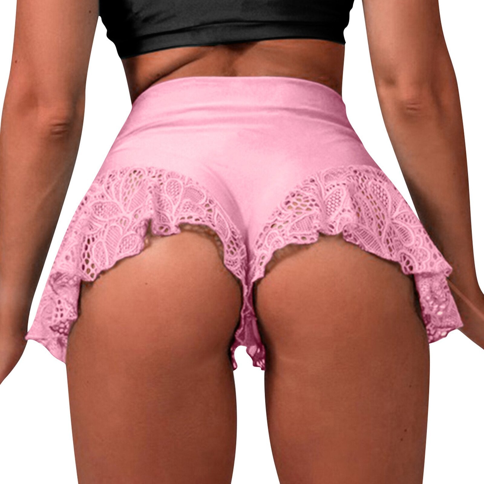 S-3XL Women Hip Lift Skinny Shorts Lace Ruffle Trim Elastic Waistband Pants Gym Yoga Dance Jogging Fitness Bottoms Dancewear