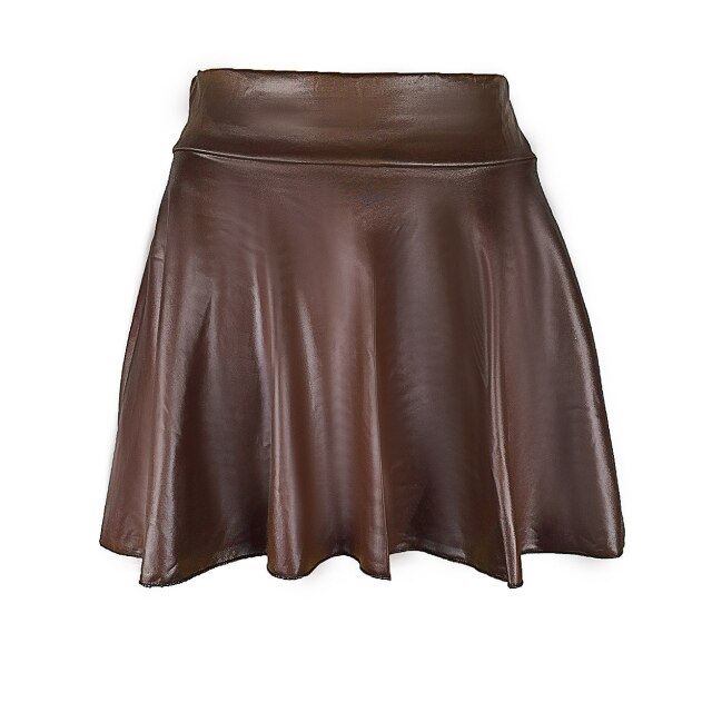 Women High Waist Faux Leather Flare Skirt Ladies Casual Solid Color Ruffled Miniskirt.