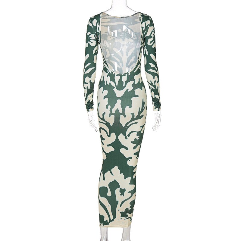2022 Long Sleeve Backless Sexy Camouflage Dress Summer Women Fashion Streetwear Outfits Solid Club Clothing