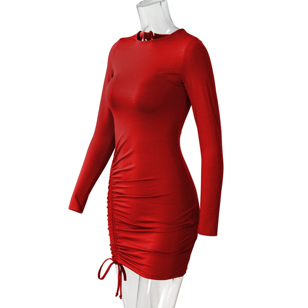 2022 New Sexy Slim Long-sleeved Drawstring Pleated Hip Skirt Red Black Vestido Midi Elegante Y2k Dress