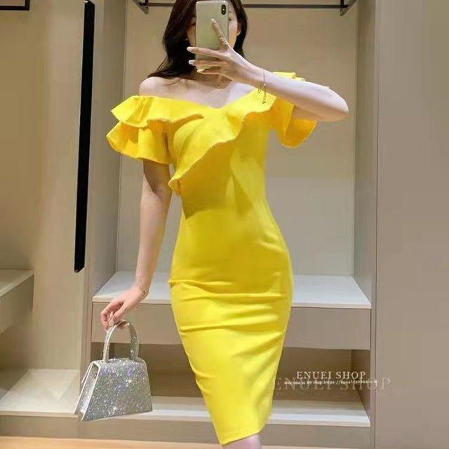 2022 New Summer Ruffles Sexy Slim Elegant Dress Women Club Celebrity Evening Runway fashion MIDI Party Dress