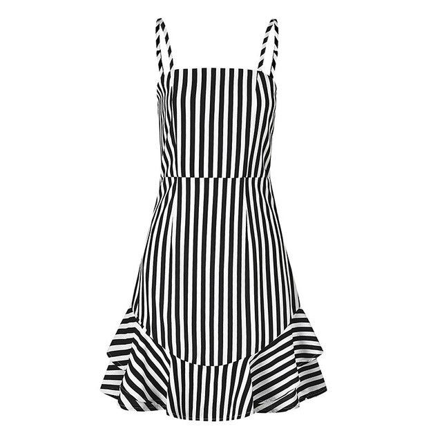 2022 Summer New Sexy Backless Layered Ruffle Chiffon Beach Skirt Printed Suspender Holiday Women Dress