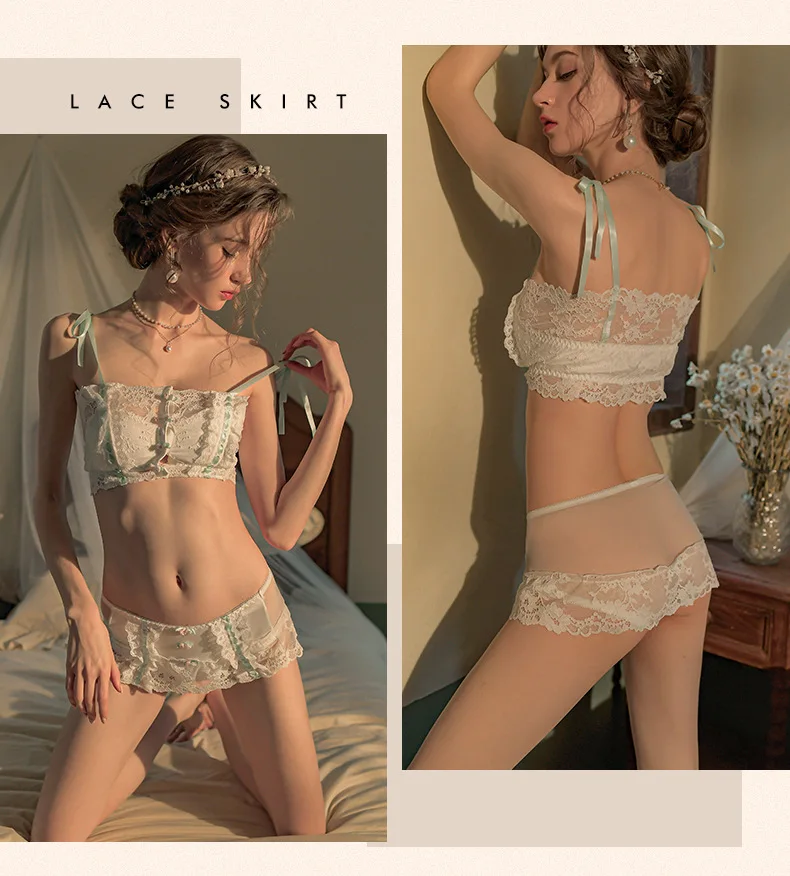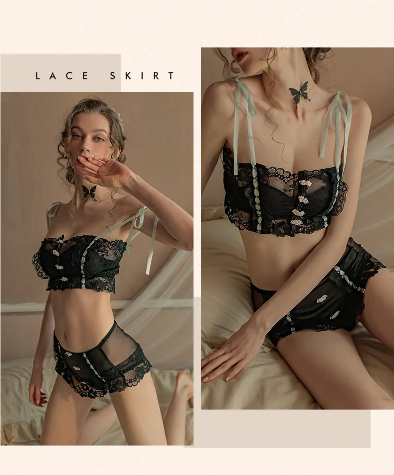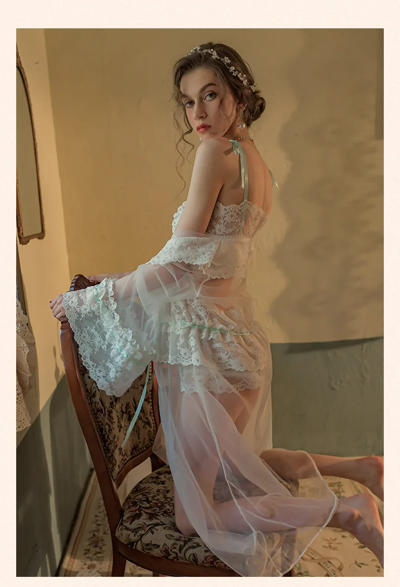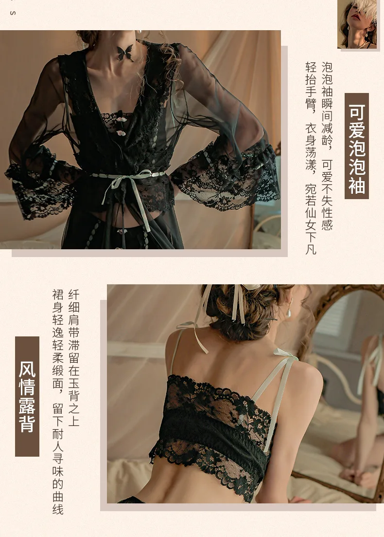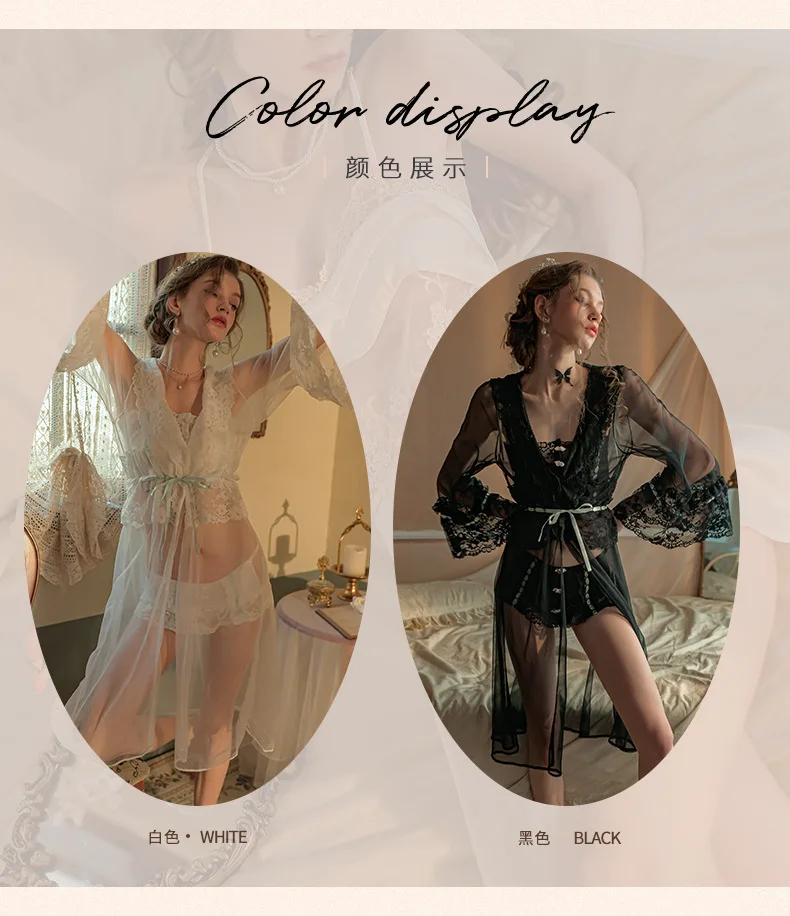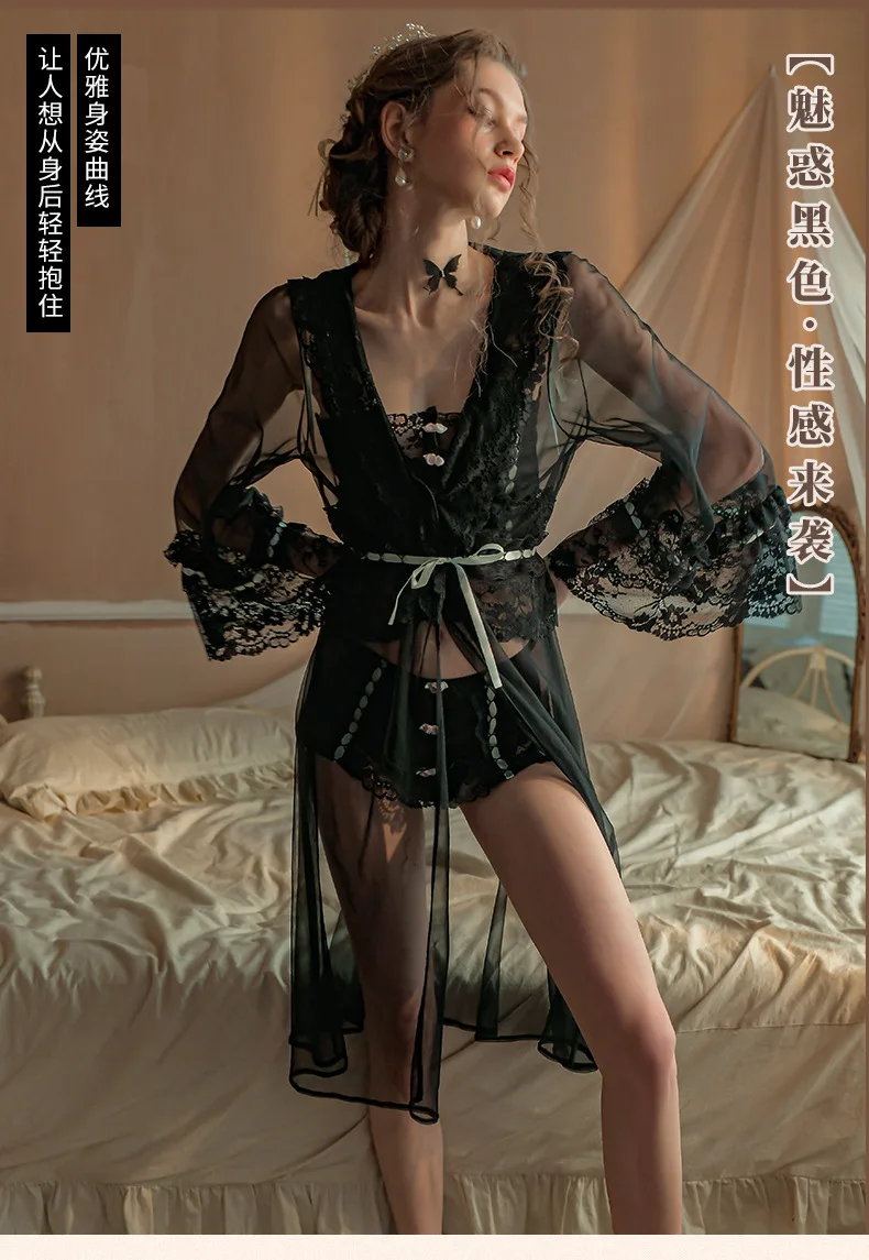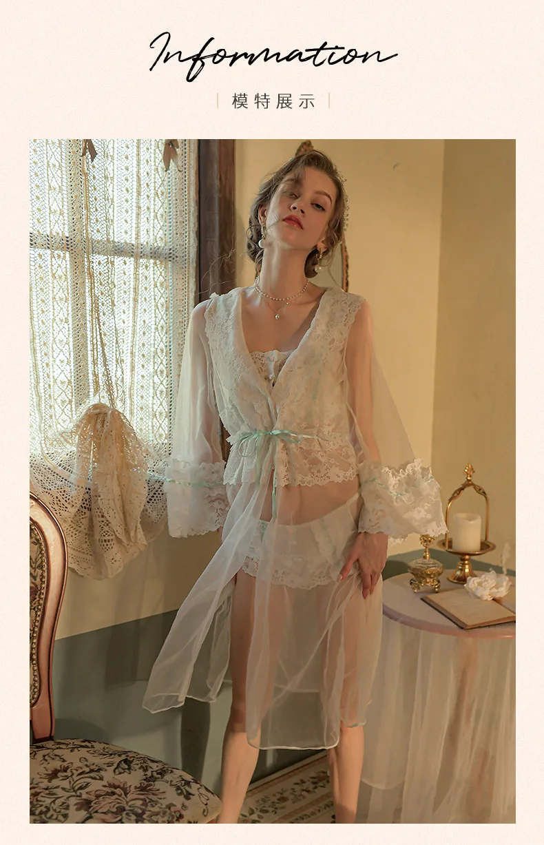 3Pcs Suspender Top Shorts Nightgown Suit Big Size Pajamas Sexy Lingerie Women's Mesh Lace Embroidery Sling Nightdress Homewear