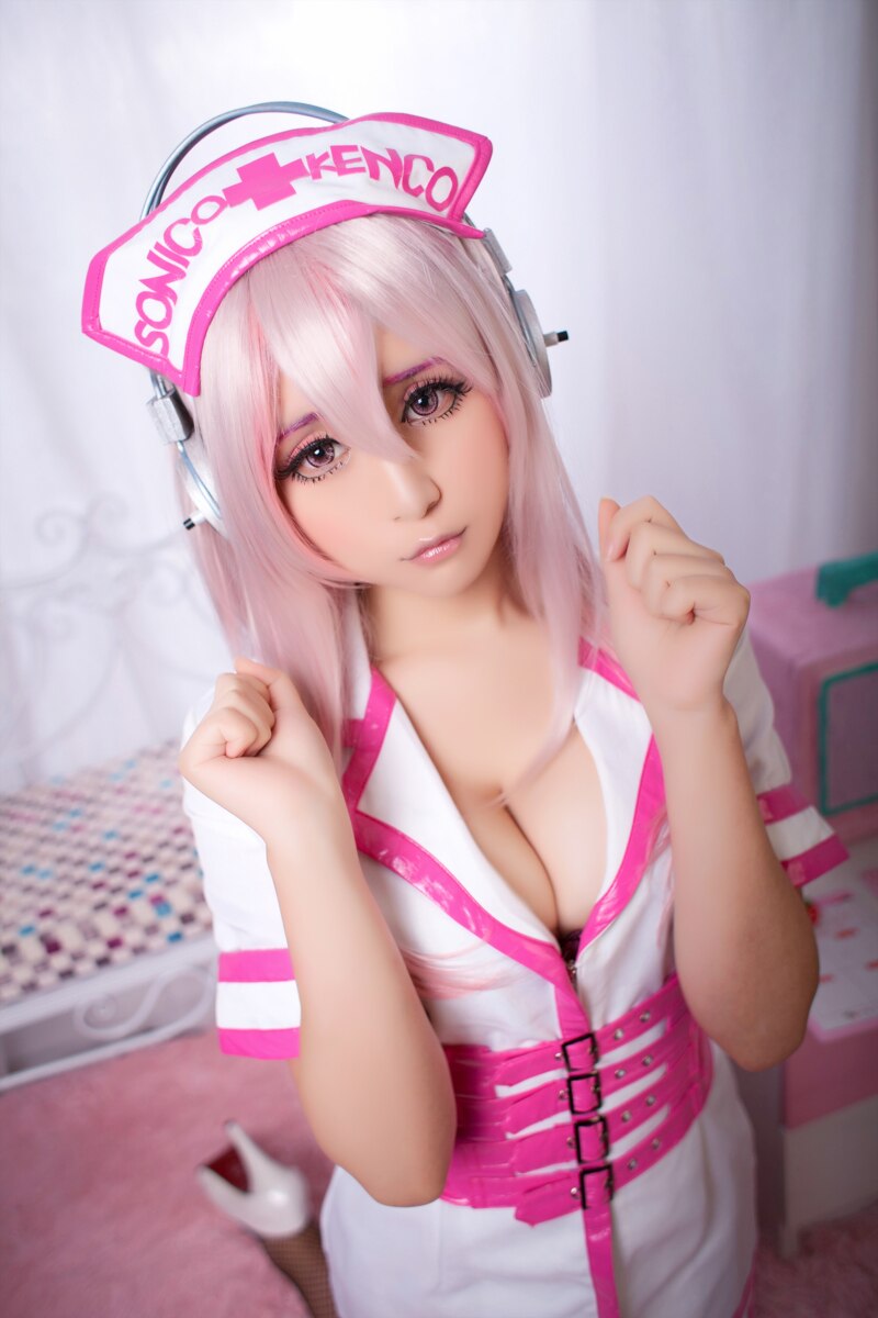 Anime Cosplay SUPER SONICO Wig Cosplay Costume SONICOMI Nurse Uniform Dress Sexy Female Halloween Costume For Woman Customed