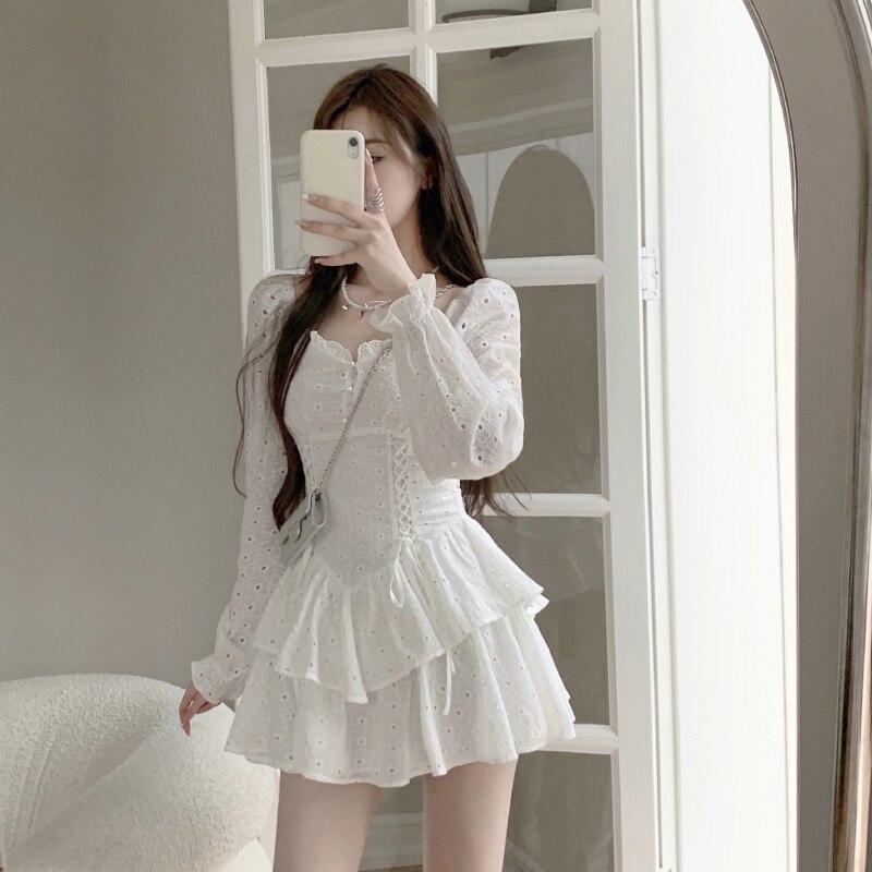 Autumn White Fairy Kawaii Dress Women V-neck Slim Elegant Party Mini Dress Female Sexy Korean Fashion Designer Y2k Dress 2021