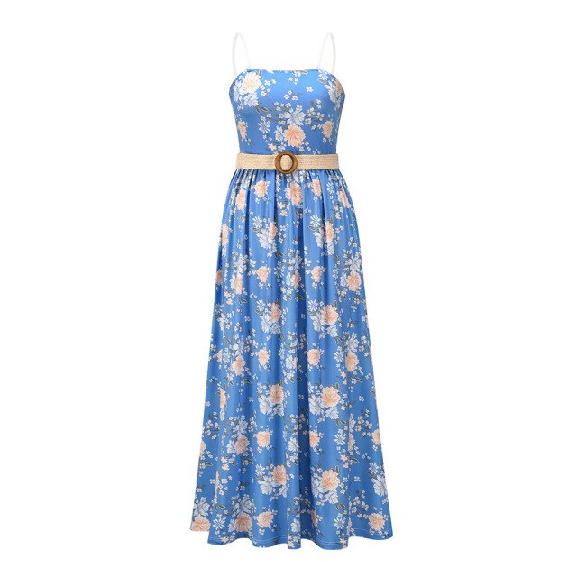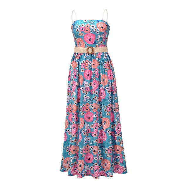 Bikoles Summer Sexy Strapless Spaghetti Straps Women's Dress 2021 New Fashion Bohemia Flowers Print Blit Tunic Maxi Ladies Robe