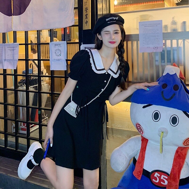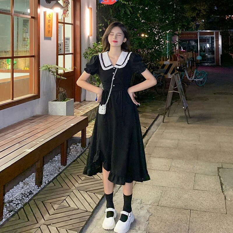 Black Princess Elegant Sweet Dress Women 2021 Summer Slim Korean Designer Party Kawaii Dress Female High Waist Causal Sundress