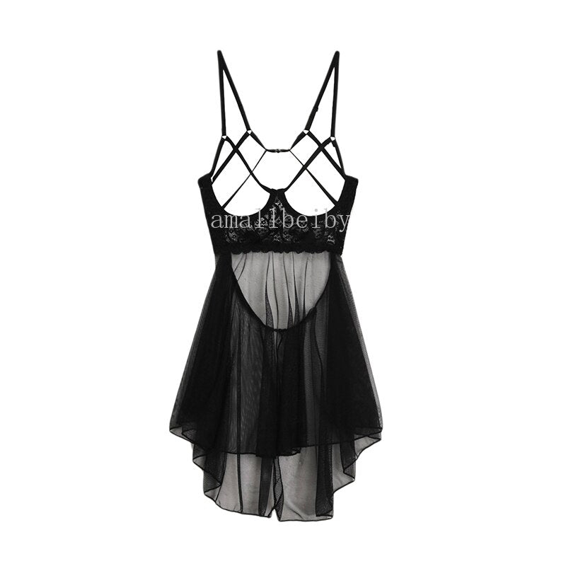 Black Sexy Womens Lingerie Nightgown Tulle Lace Gauze V-Neck Sleeping Dress Women Sleepwear Night Gown Nighty Home Clothes