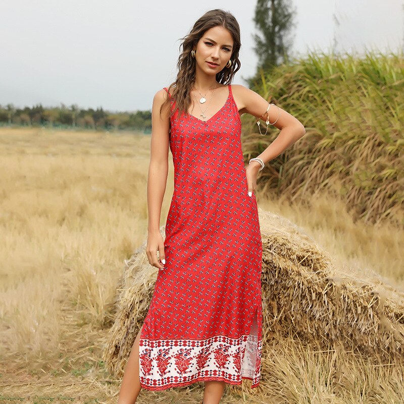 Boho Slim V Neck Summer Bandage Backless Maxi Long Dress Women Casual Spaghetti Strap Party Beach Holiday Elegant Tunic Dress