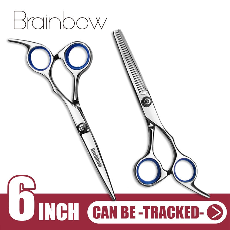 Brainbow 6 inch Cutting Thinning Styling Tool Hair Scissors Stainless Steel Salon Hairdressing Shears Regular Flat Teeth Blades