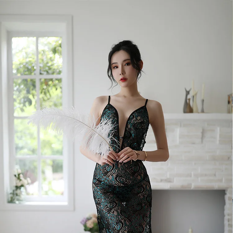 2. Lace V-neck pattern, sexy cross straps, close-fitting waist design, classic version design, fine workmanship, showing a moving posture