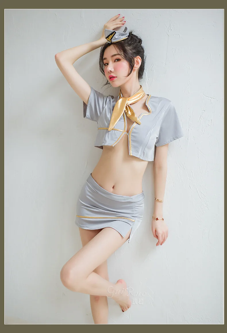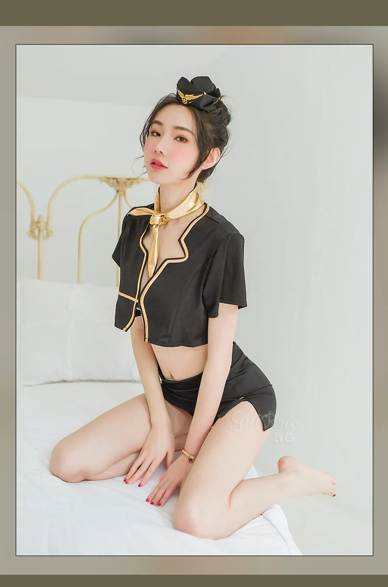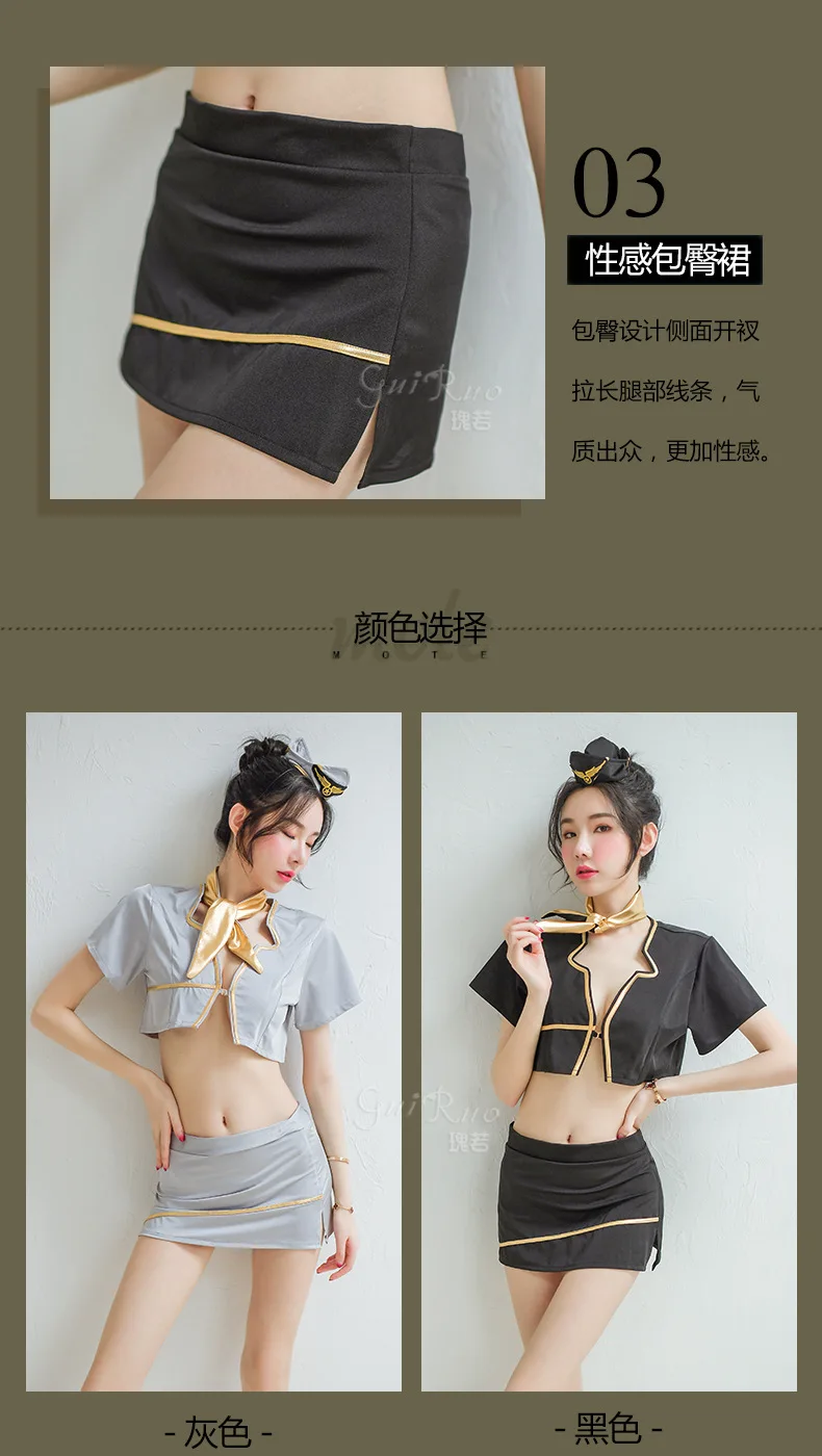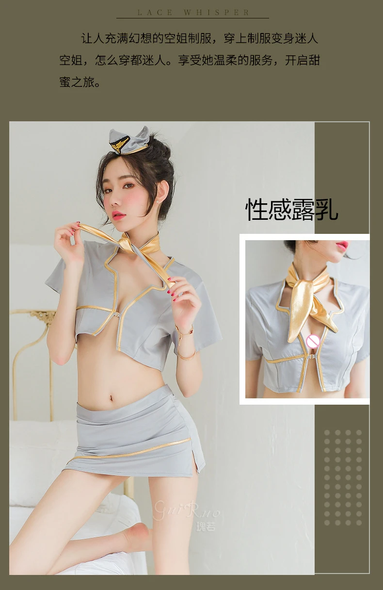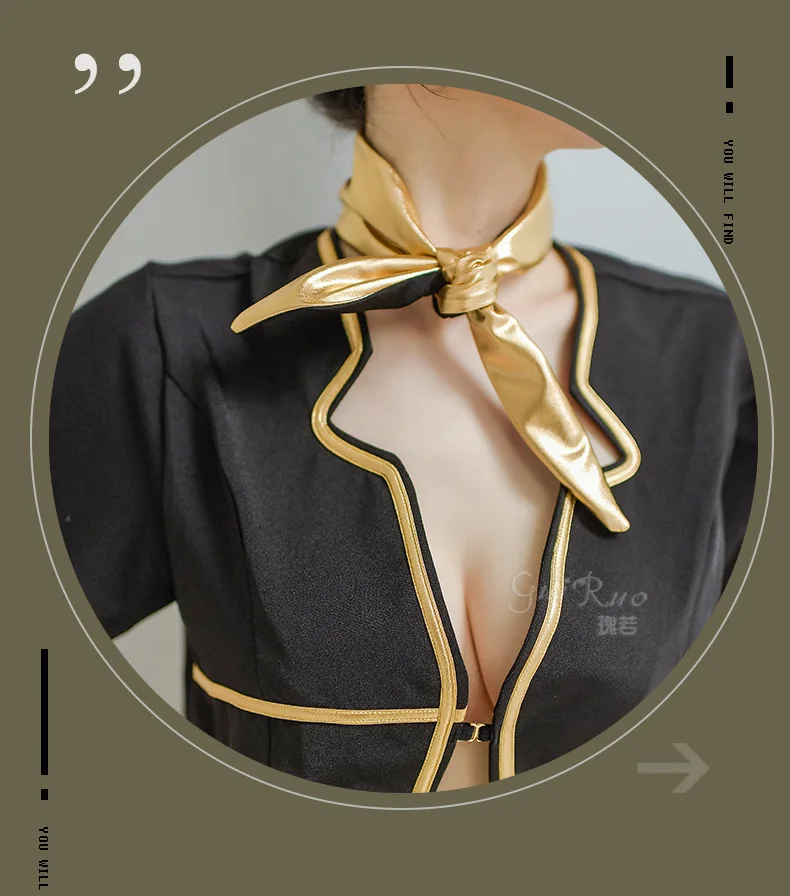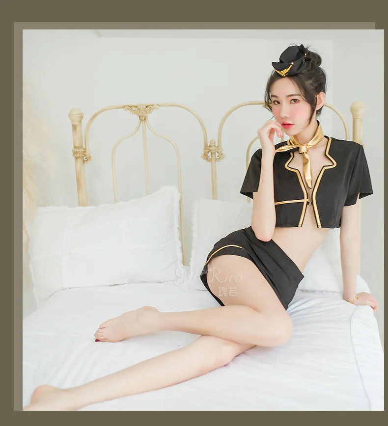 Cosplay Stewardess Uniform Woman Sexy Porno Skirt Femme V-top Dress Set Exotica Naughty Roleplay Flight Attendant Slutty Clothes