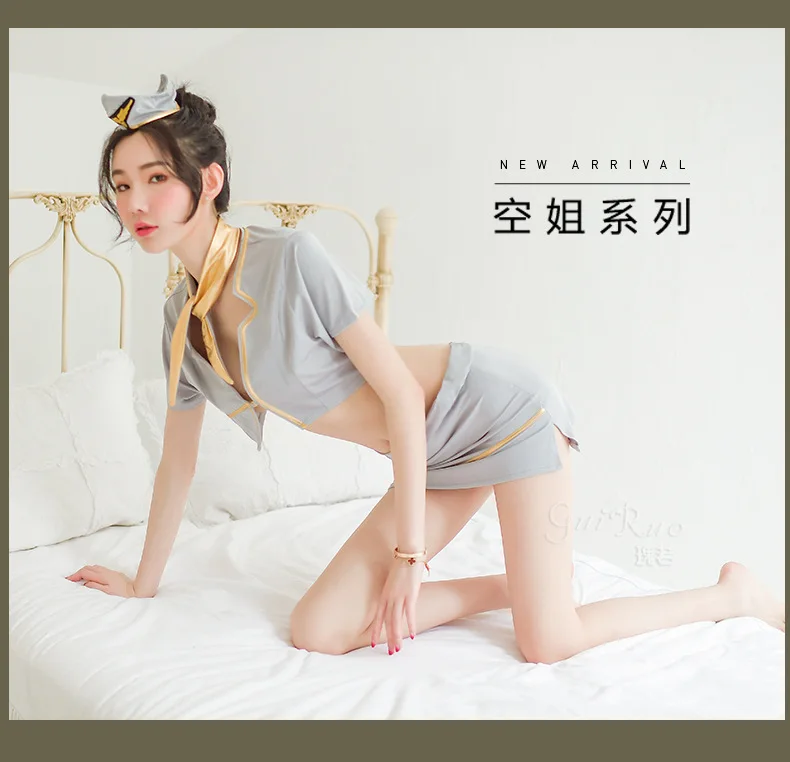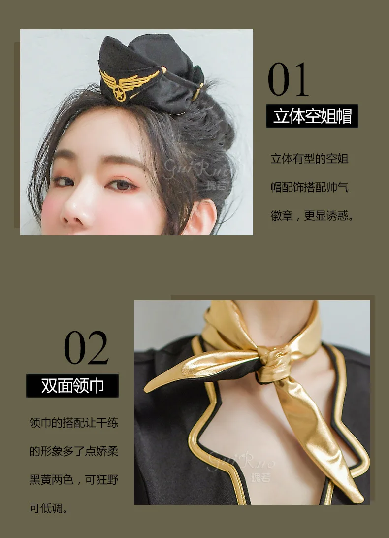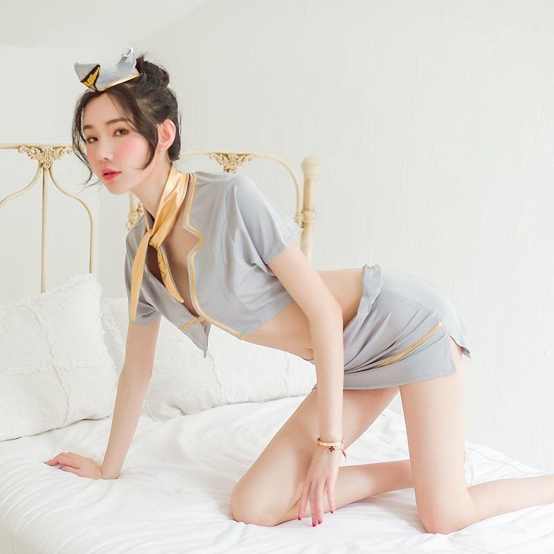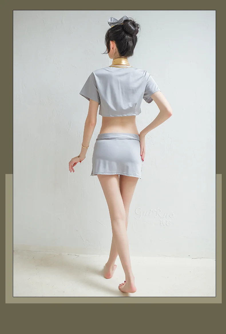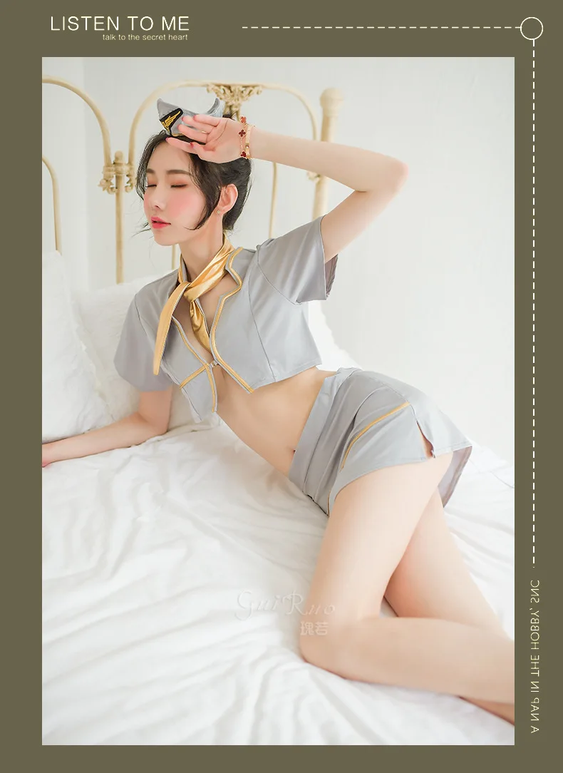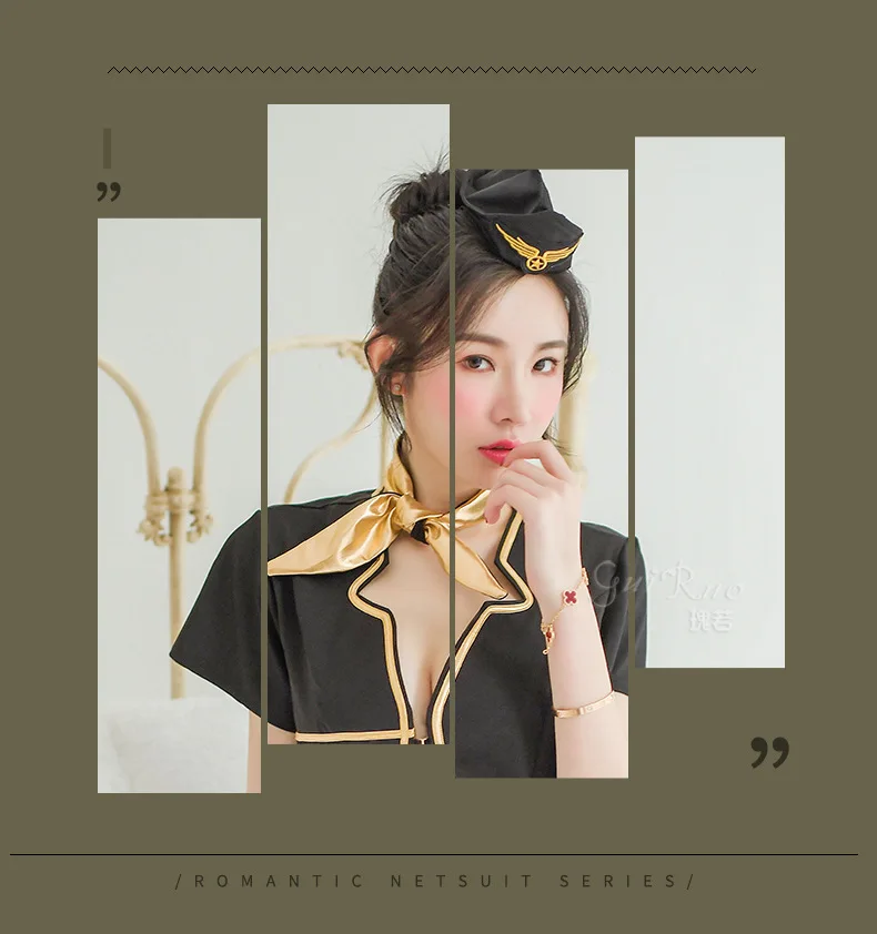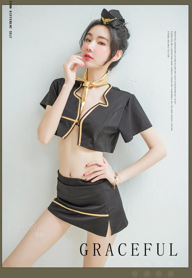 Cosplay Stewardess Uniform Woman Sexy Porno Skirt Femme V-top Dress Set Exotica Naughty Roleplay Flight Attendant Slutty Clothes