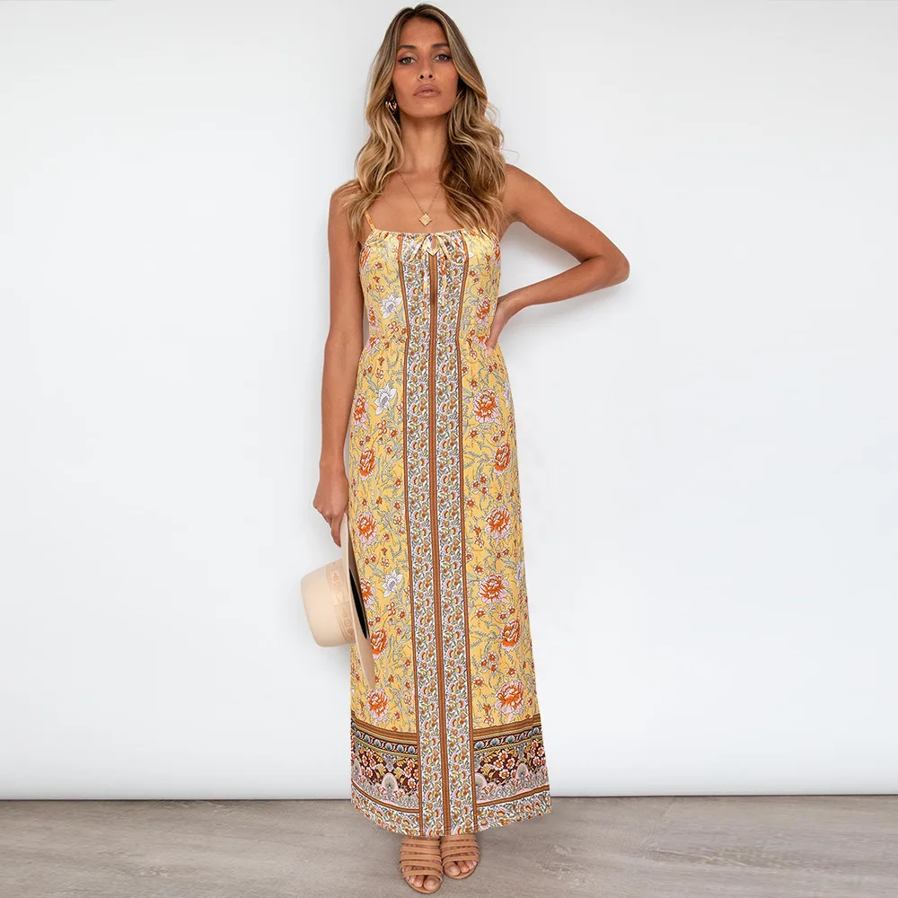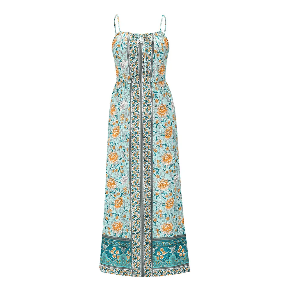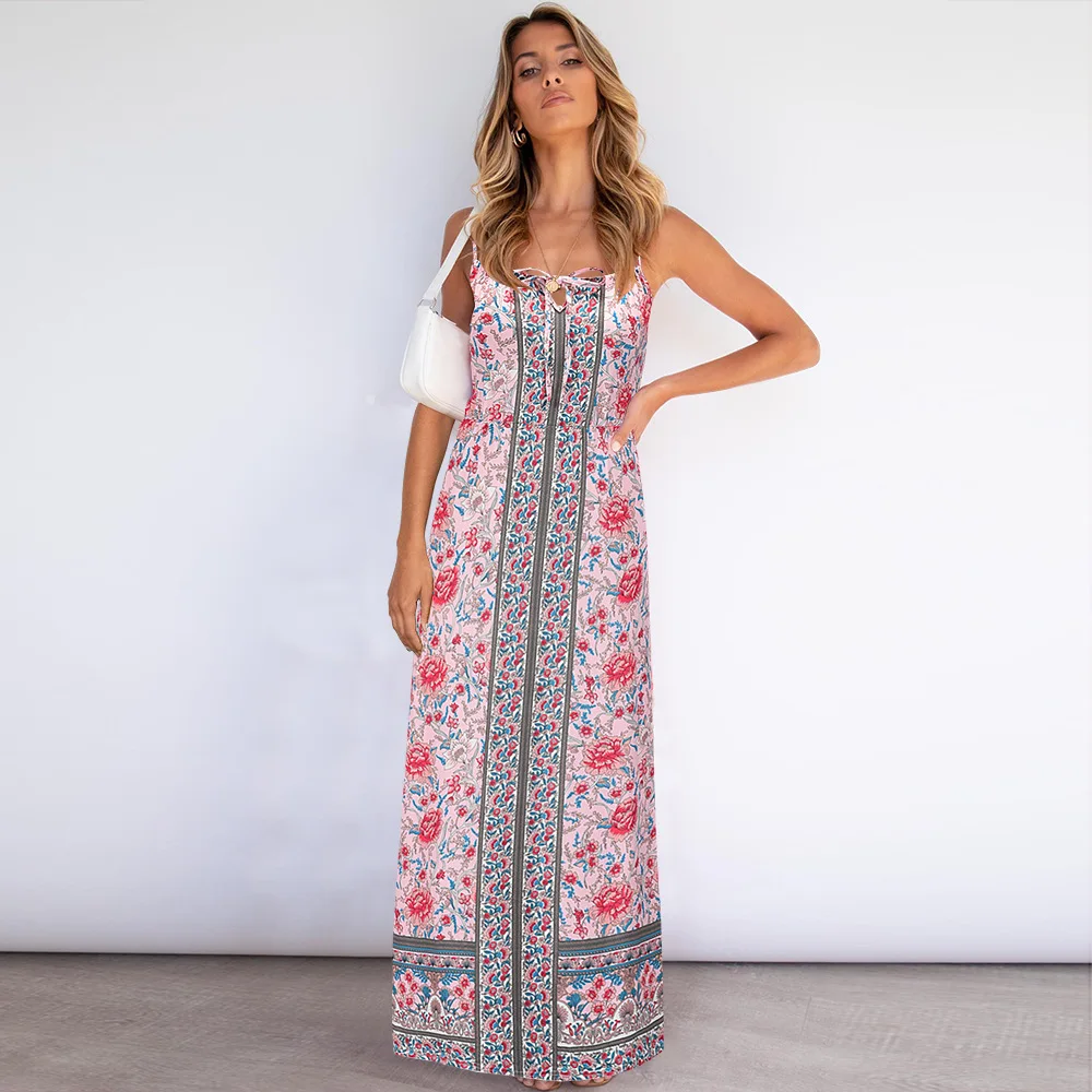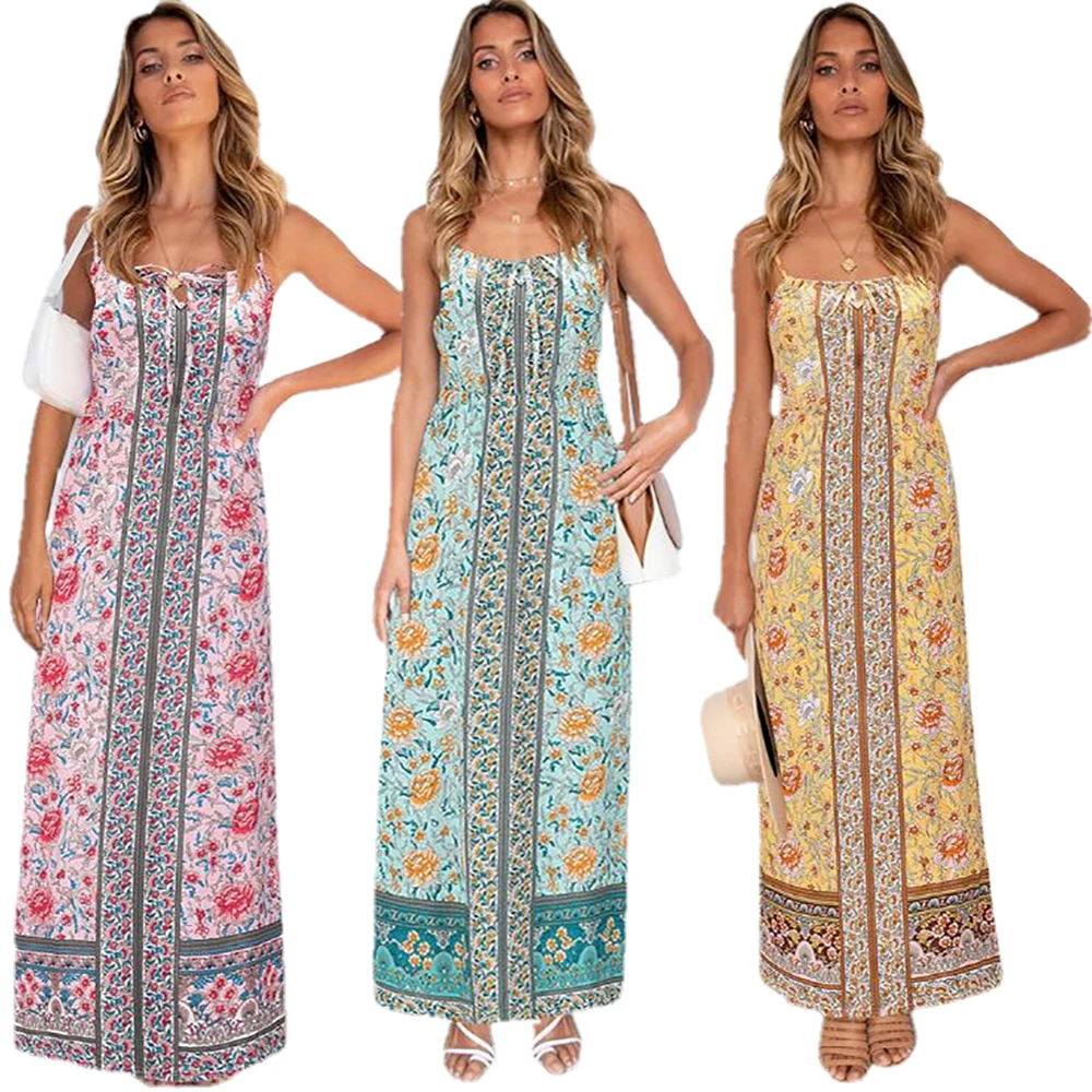 Dress Woman 2021 Summer New Retro Temperament Floral Dress Ladies Big Size Sexy Slim Bohemian Halter Belt Long Dress