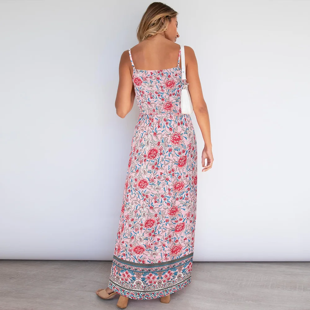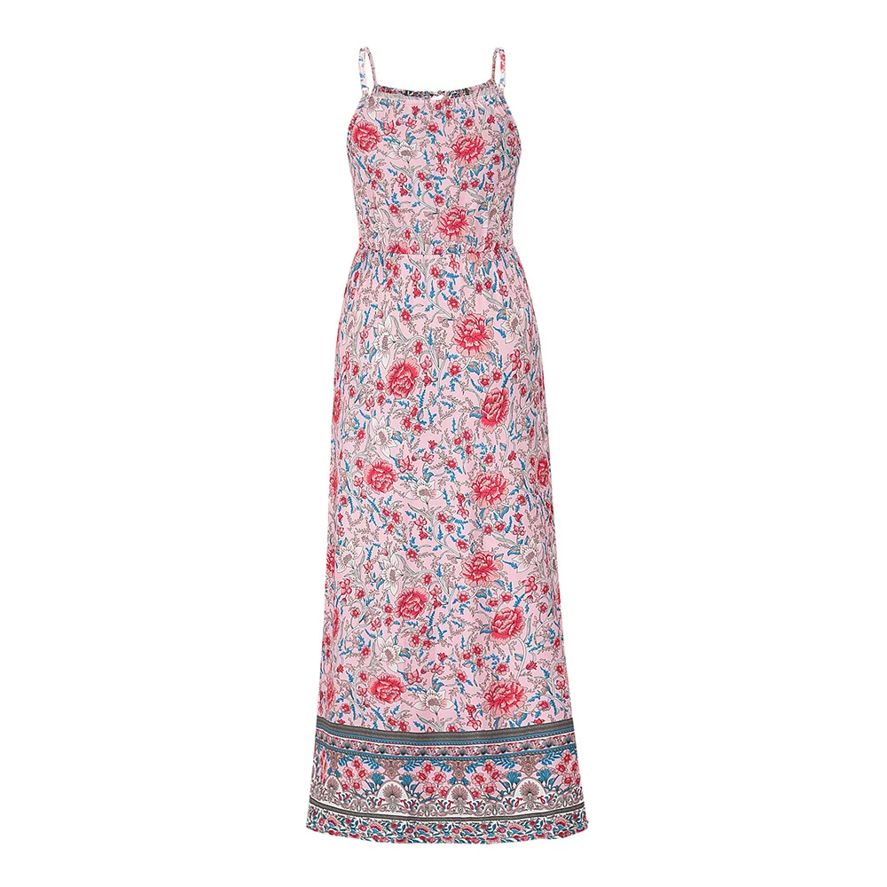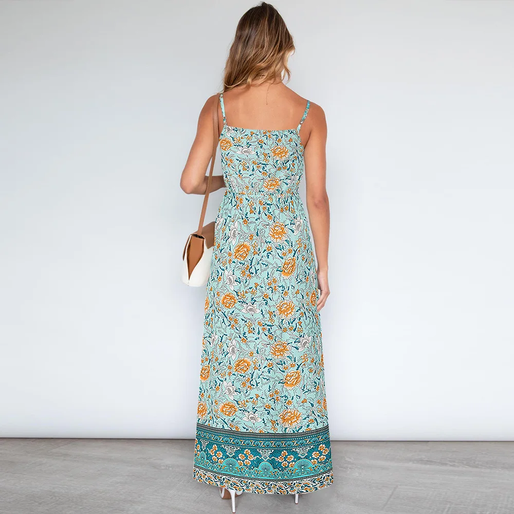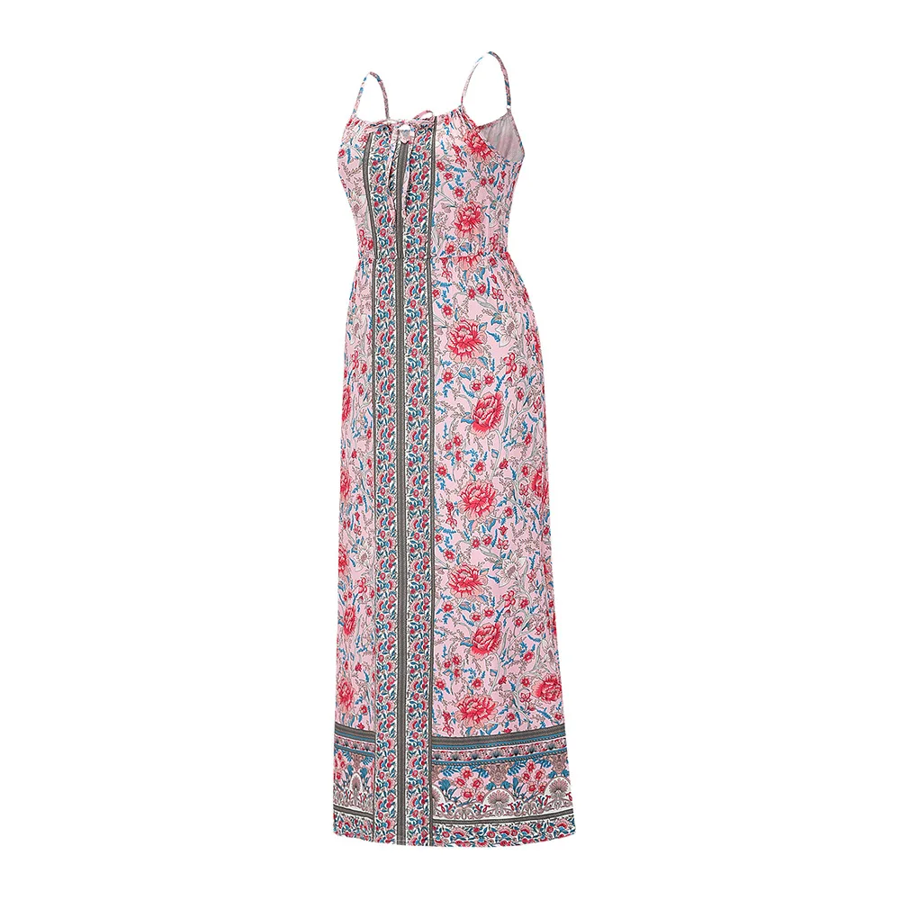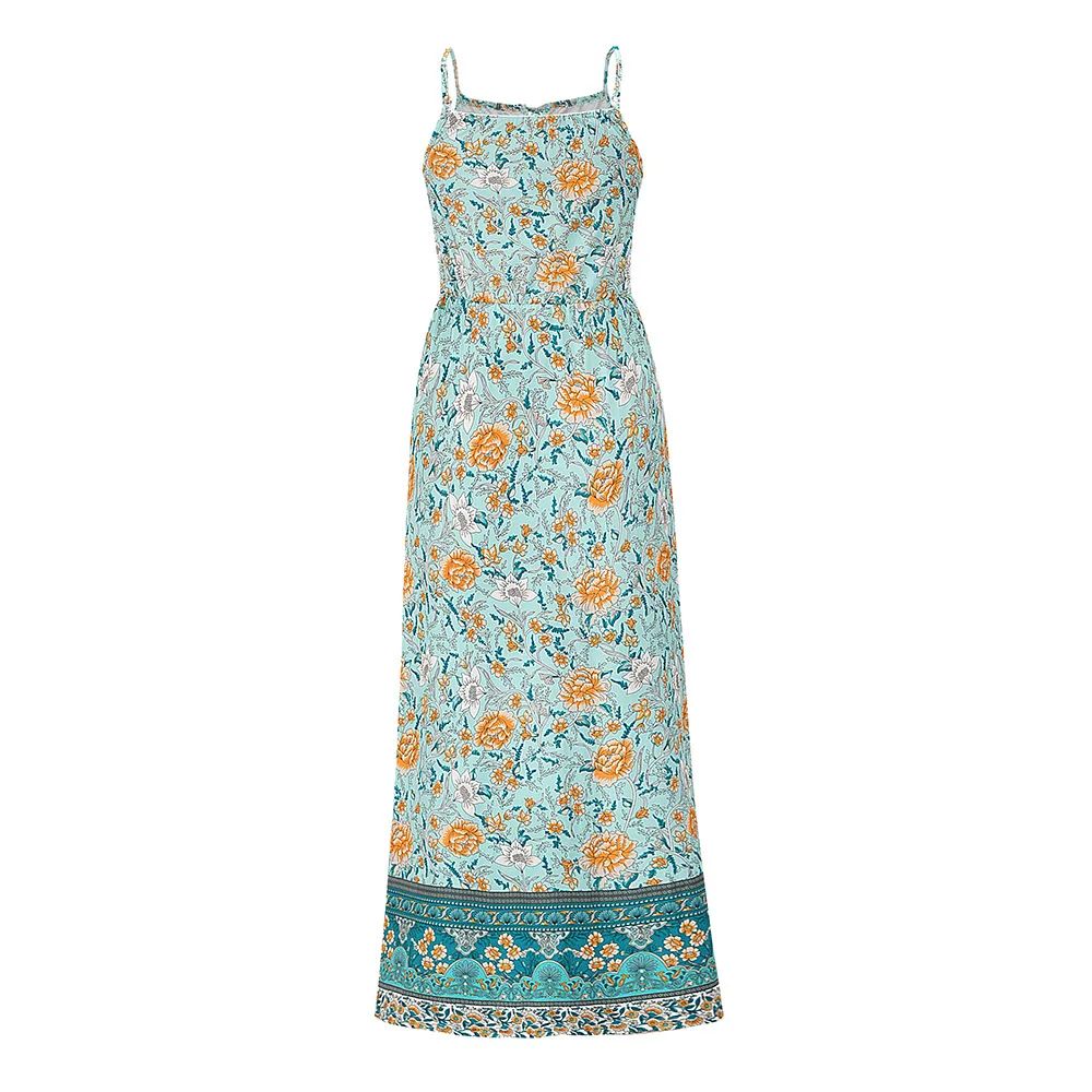 Dress Woman 2021 Summer New Retro Temperament Floral Dress Ladies Big Size Sexy Slim Bohemian Halter Belt Long Dress