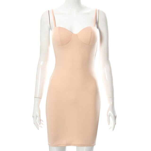 Elegant Simplicity Slash Neck Low Cut Women Mini Dress Pure Apricot Sling Sleeveless High Waist Slim Dress Women 2022 Summer New