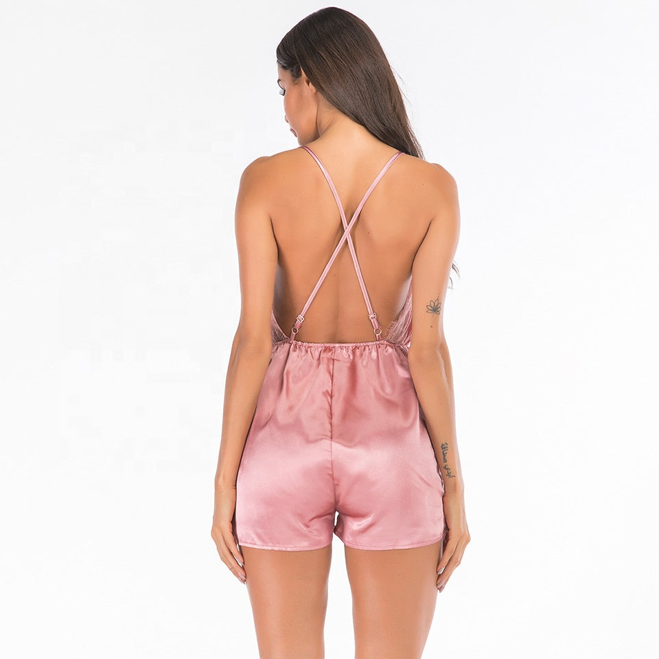 Europe and America Sexy deep V-neck sling lace home dress Pajama dress