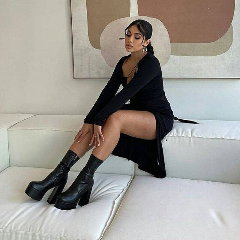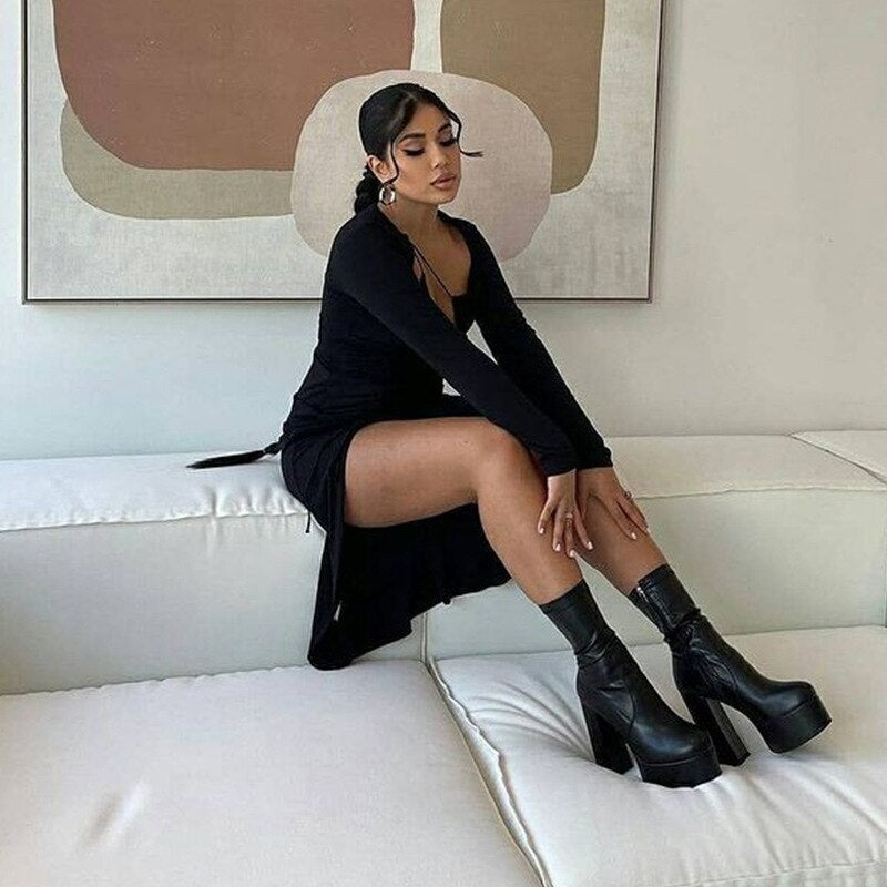 Fake Two Piece Commuter Sling Short Skirt High Waist Long Sleeve Split Mid-length Skirt Sexy Hollow Out Patchwork Women Dress