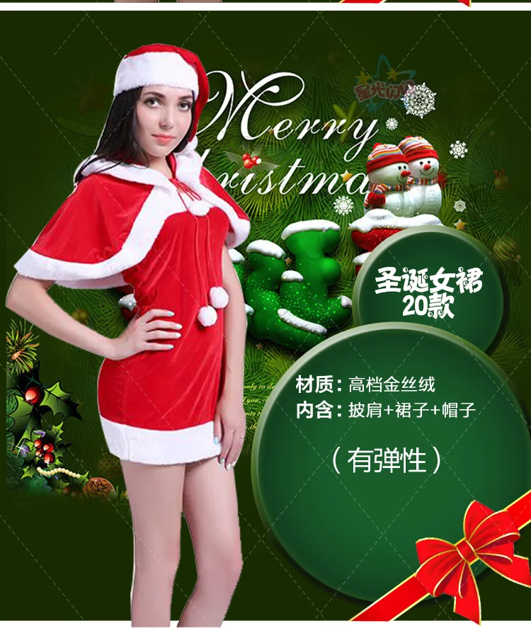 Gown Shawl Winter Christmas Dress Sexy Women Golden Velvet Cape Red Fantasy Santa Claus With Hat for Female Party