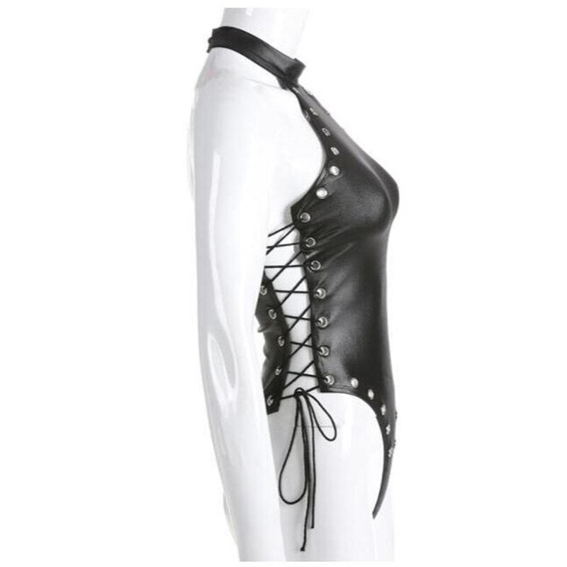 Hollow Latex Leather Straps Tights Bodysuit For Women Sexy Lingerie Underwear Erotic Patent Backless One Piece Dress Nightclub