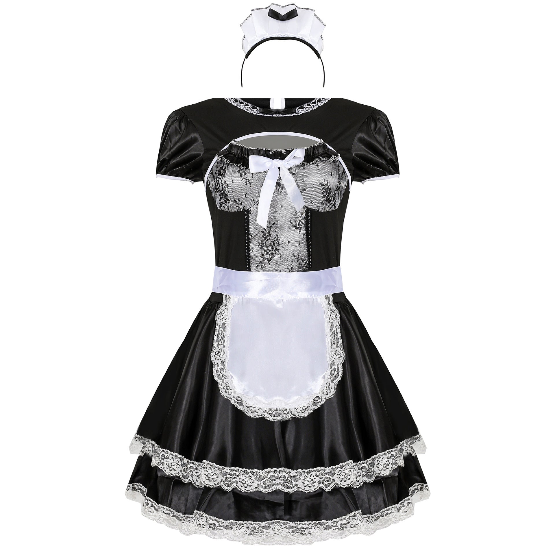 Japanese Restaurant Servant Sexy Pinafore Lace Black Dress Short Sleeve Maid Role-Playing Costume With White Apron Hair Hoop